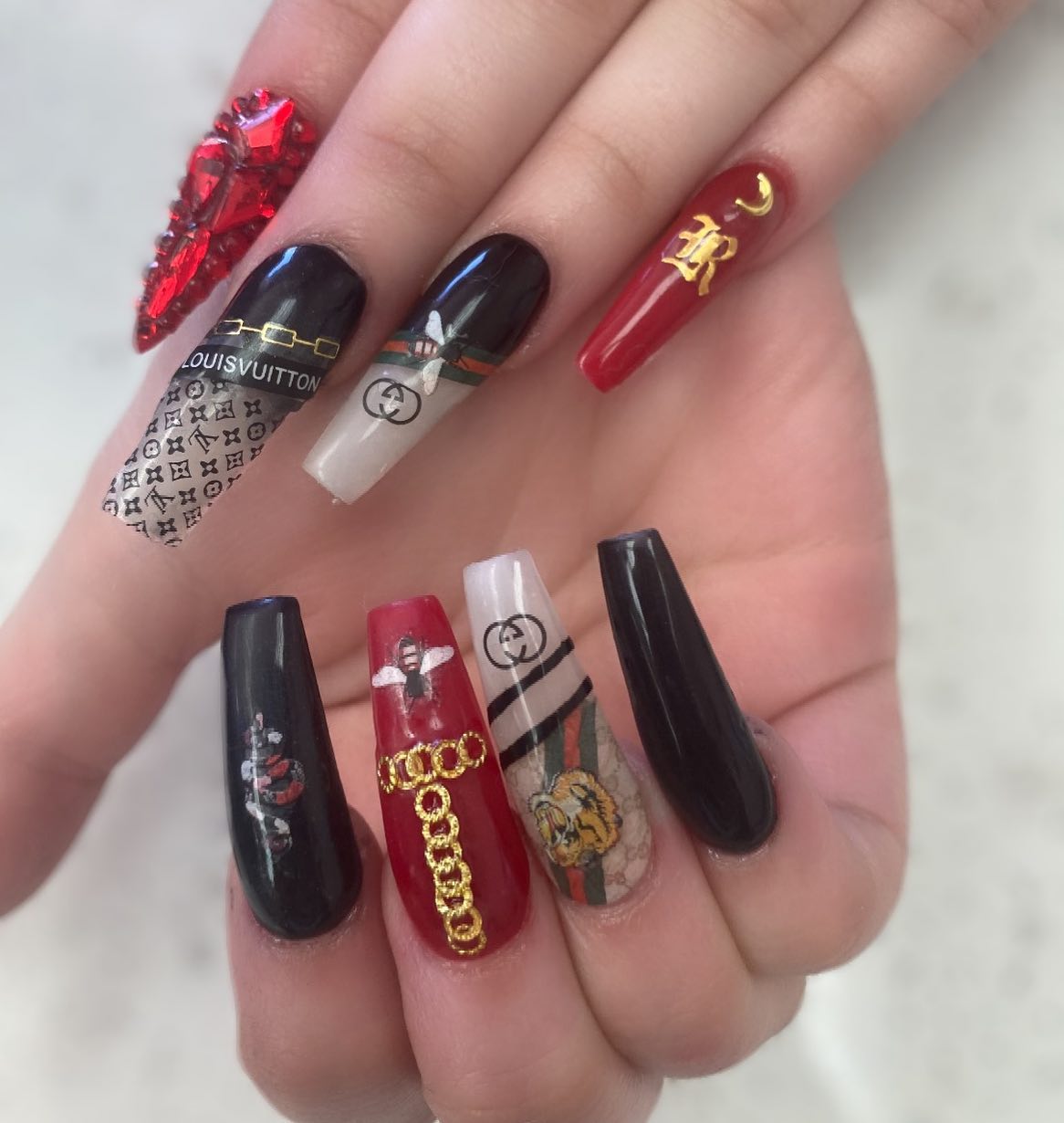 Obsessed with my designer set! The Gucci and LV details are perfect. Such a professional and creative team at Fashion Nails.